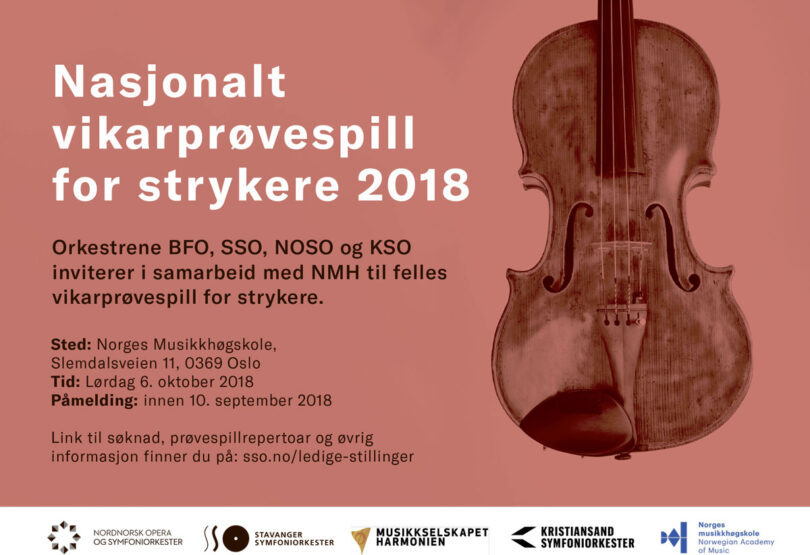 Orkestrene BFO, SSO, NOSO og KSO inviterer i samarbeid med NMH til felles vikarprøvespill for strykere.