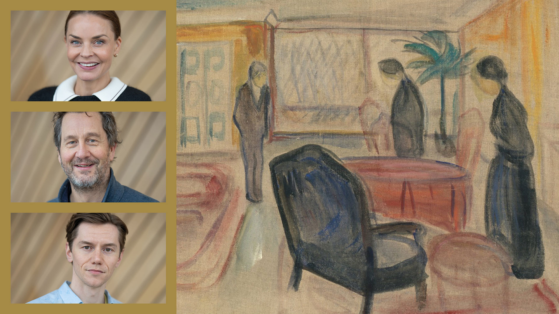 — Motsetningen mellom fasade og det indre har vært sentral når vi skulle finne uttrykket i forestillingen. Derfor har vi latt oss inspirere av Munch. Han maler det indre. Han maler følelser, øyeblikk, det som egentlig ikke kan settes ord på. Og han jobber med ganske store kontraster, noe som kommuniserer godt i det materialet vi jobber med og det uttrykket vi søker.