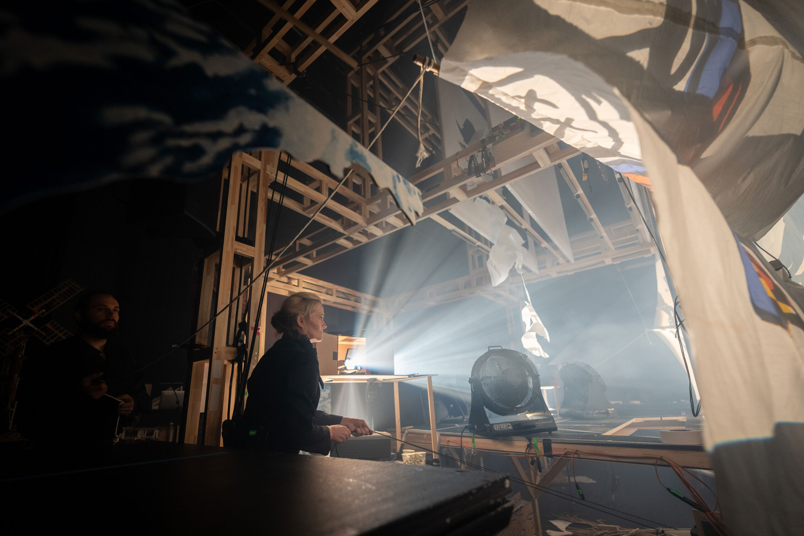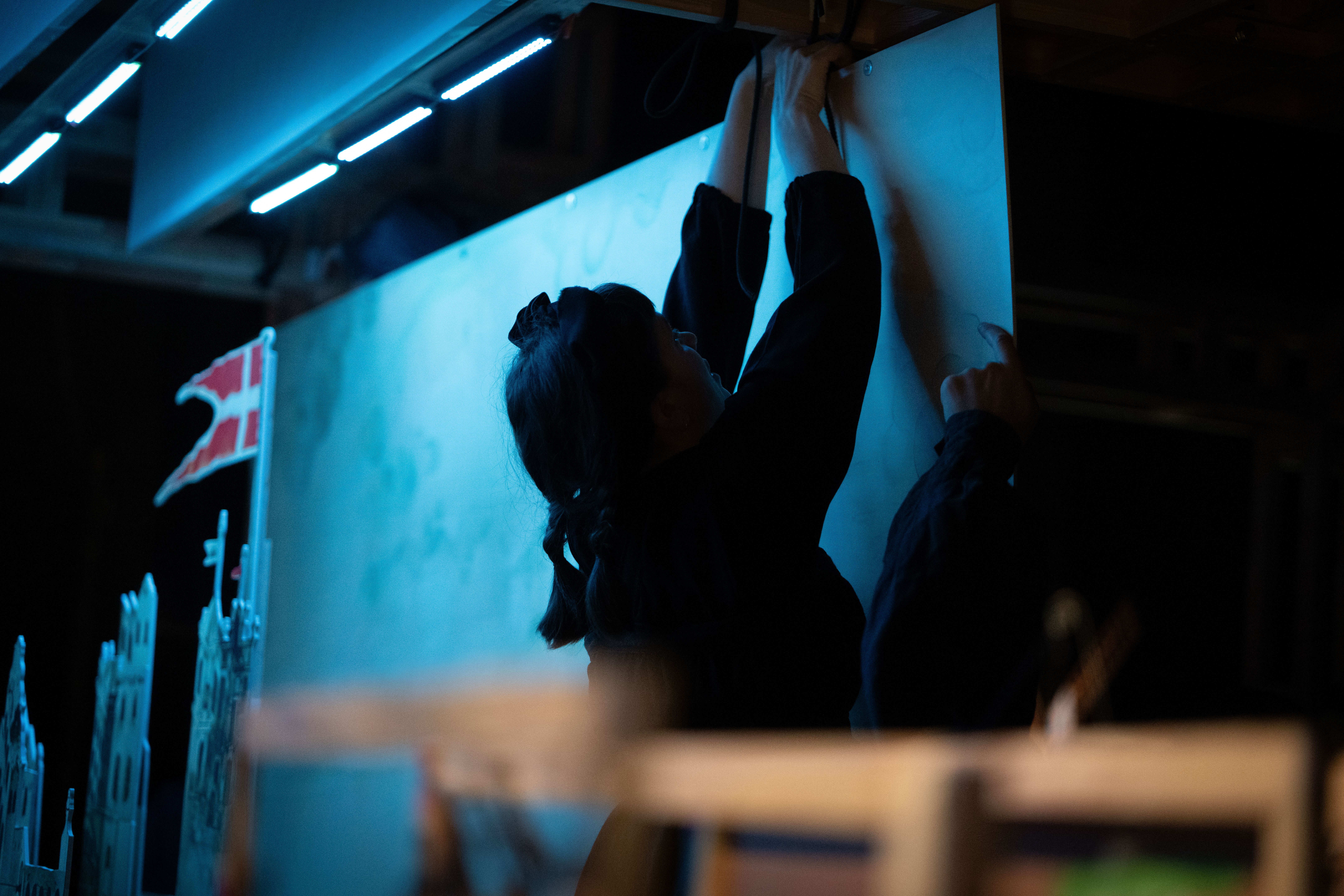 Det som begynte som en idé om skyggeteater som virkemiddel for å fortelle den inntil nylig forholdsvis ukjente og svært brutale delen av den dansk-norske historien, nemlig deltakelsen i den transatlantiske slavehandelen, utviklet seg til å bli en stor scenografisk konstruksjon inspirert av norsk nasjonalromantisk arkitektur bygget av verkstedet i Kilden. Og med hundrevis av skyggefigurer av mennesker, skip og landskap tegnet for hånd av illustratør Håvard Steensen og kuttet ut i Kildens verksted, er det et voldsomt arbeide som ligger bak forestillingen, ifølge Frøysnes.